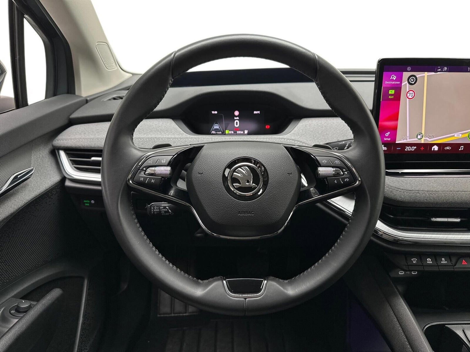Nævneværdigt udstyr vi vil fremhæve: - Skoda Crystal Lightning LED forlygter - Adaptiv fartpilot m. Travel assist (Aktiv styreassistent) - Head-Up Display m. Augmented Reality - Nøglefri betjening - El indst. førersæde m. memory - Trådløs Apple CarPlay & Android Auto - Navigation m. skiltegenkendelse - Blindvinkelassistent & vejbaneassistent - Bakkamera m. parkeringssensor for/bag - 3-zonet klimaanlæg m. sædevarme for (Climatronic) - Multifunktionslæderrat m. varme